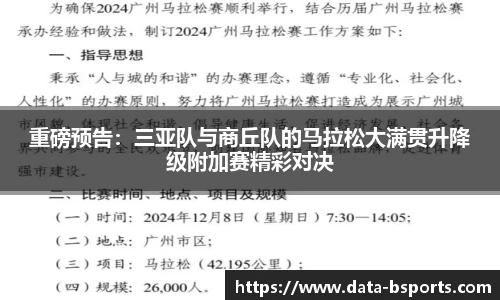 重磅预告:三亚队与商丘队的马拉松大满贯升降级附加赛精彩对决